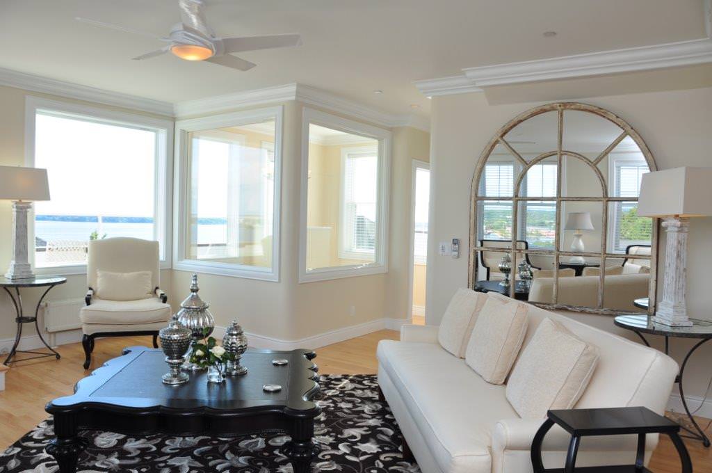 This two bed, three and a half bath fully furnished penthouse apartment is next level luxury. Encompassing the entire third and fourth floors of this premier East End building, every inch of this 3,000-square-foot space is stunning. The first level features an open floor plan that combines a sunny reading nook, a cozy bright living area, and a fully loaded gourmet kitchen. The first floor also features the master bedroom and bath, as well as a private window lined office space facing the waterfront. Upstairs you are surrounded with spectacular views from the private deck and just inside is a comfortable sitting area perfect for socializing or relaxing with a book. The top floor is also home to the second bedroom that has been paired with a spectacular bath outfitted with a large Jacuzzi tub and a beautiful glass shower. Every room is full of natural light and warmth. You won’t want to leave this apartment… but when you do, your surroundings are equally as beautiful.