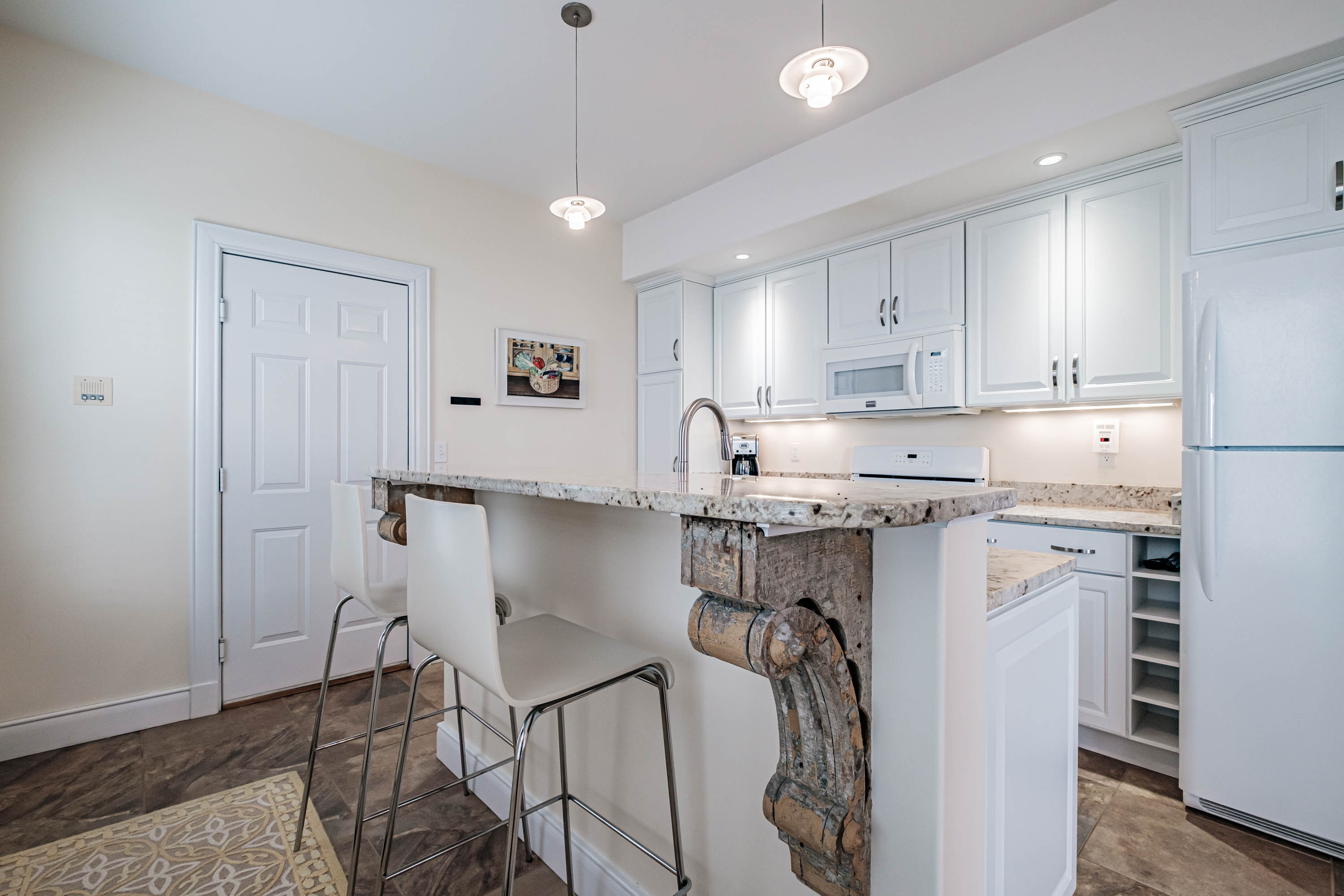 This one bed, one bath Eastern Promenade property features an open and welcoming floor plan that ties the kitchen, dining and living room together seamlessly. Enjoy granite countertops, a large tiered kitchen island, grand bay windows and comfortable furnishings while you take in panoramic views of Casco Bay. Whether you’re inside or outside sitting on your private deck or socializing in the beautifully landscaped courtyard, you will be sure to enjoy this spectacular space.
