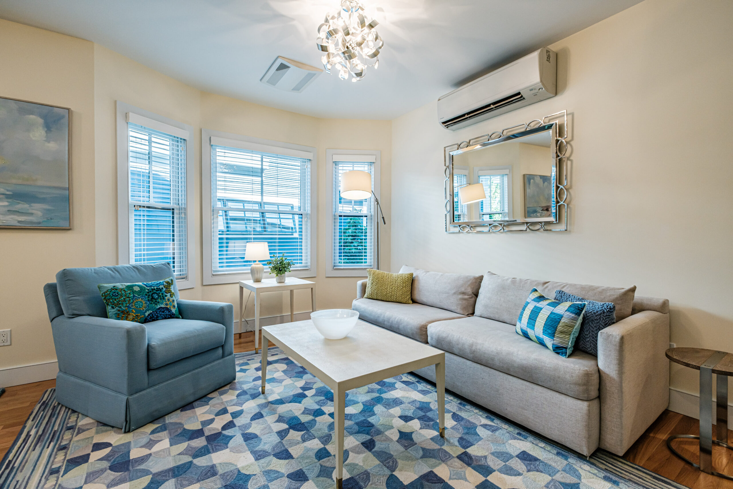 This two bed, one bath Wilmot Street apartment is modern, clean and features a highly functional open floor plan. Located on the second floor this unit has access to its own private deck overlooking the shared courtyard, and the added benefit of a private laundry room with plenty of space for additional storage. The apartment also comes with stainless-steel appliances, granite countertops, hardwood and tile floors, a radiant heated bathroom floor, an air purification system, air conditioning, and two beautifully dressed queen size beds.